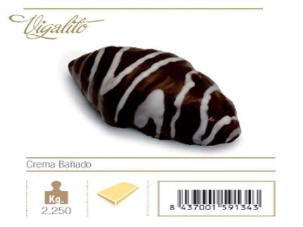Vigalito relleno de crema bañado de chocolate.